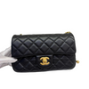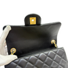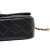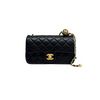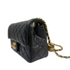 This is an authentic Chanel Rectangular Pearl Crush Flap Lambskin Quilted in Black. The chic mini crossbody classic is crafted in quilted lambskin leather. The bag features an aged gold chain link leather threaded shoulder strap with a strap adjuster and a facing classic aged gold CC turn lock. This opens the flap to a gold leather interior with zipper and patch pockets.