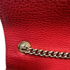 Grab this Gucci crossbody with red pebbled calfskin leather featuring Gucci’s signature Interlocking GG logo on the flap.  Perfect for both day and night outs!