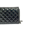 This Chanel East/West Wallet on Chain is crafted from diamond-quilted patent leather and features a textured silver 'CC' emblem on the facing flap enclosure that maximizes space and increases security for your items.