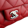 Clutch with Chain Flap Lambskin Quilted Red SHW