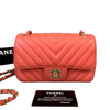 Mini Rectangular Chevron Lambskin Orange GHW
