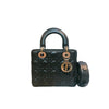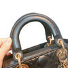 The Lucky Badges My Lady Dior is a feminine, stylish tote crafted of the hallmark cannage quilted lambskin leather in midnight blue. The rolled reinforced leather handles provide sturdy carrying, while the embellished strap adds versatility and comfort. The bag features gold hardware and a top inner flap that opens to a classy interior in black Dior monogram jacquard fabric with a zip pocket. The Charms can be interchanged with newly chosen charms sold separately at the Dior boutique.