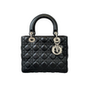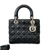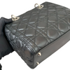 This Christian Dior Lambskin Cannage Medium Lady Dior in black is a quintessential classic bag from the house of Dior. This bag features a black lambskin leather exterior paired with a red Dior monogram jacquard interior fabric. This classic Lady Dior Bag is an ideal day to day accessory.