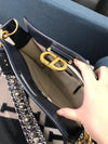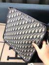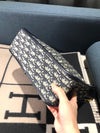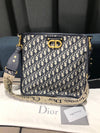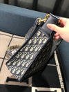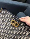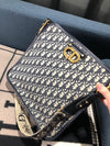 This oblique jacquard canvas bag with dark blue leather trims epitomizes functionality and style in this different version of a Dior classic piece. It features a gold hardware and the CD signature in the front that acts as the bag lock.