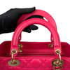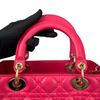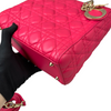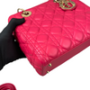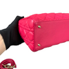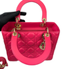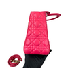 The Lady Dior bag comes in a beautiful Pink color. It features gold tone hardware and a top zipper that opens to a classy interior in grey Dior monogram jacquard fabric with a zip pocket. This classic bag can be used throughout the day but is perfect for your evening socials.