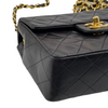This Chanel Vintage Mini Square Flap Bag features signature diamond quilted Lambskin Leather in a timeless colour adorned with a 24K Gold coated CC turn-lock closure at the front flap and the smile pocket on the back. It also features a leather and gold toned chain-link strap which can be worn as shoulder bag or cross body. The interior features one compartment with a side zippered pocket to fit all of your essentials. Don't miss your chance to own this Rare Vintage beauty.