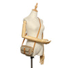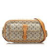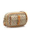 The Juliette MM features a cotton body, a flat leather strap, an exterior flap pocket with a buckle closure, a top zip closure, and an interior slip pocket.