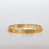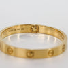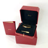 Show your Love for your Lover with the Cartier Love Bracelet in 18K Yellow Gold. This highly sought after bracelet is size 16 and was made in 2017. This bracelet opens at the hinge by using the screwdriver which ensures that the bracelet will not get lost. The screw engraving is featured throughout the bracelet. This bracelet is a classic piece for your jewelry collection.