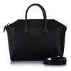 This Givenchy Antigona features a pebbled leather body, rolled leather handles, a detachable flat leather strap, a top zip closure, and interior zip and slip pockets.