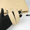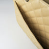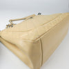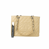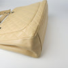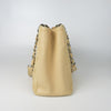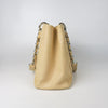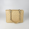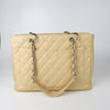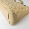The Chanel Beige Grand Shopping Tote is crafted from classic caviar leather with diamond quilting. It features leather-threaded polished silver chain-link shoulder straps with shoulder pads that accentuates the beige shade of the bag.