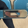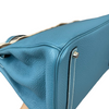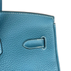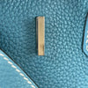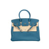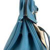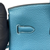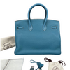 Hermes Birkin 35. Armed with its classic lock and clasps, this ‘It’ bag is both functional and chic. Extremely coveted in this rare Blue Jean Togo leather finish, this item is the quintessential bag for modern collectors wardrobe.