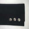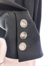 No closet is complete without a black blazer. Add this double breasted Balmain jacket to your wardrobe as your new staple piece! Features a satin lapel, besom side pockets, and signature Balmain buttons in silver.