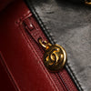 The Chanel Diana features a quilted lambskin leather body, a leather woven chain strap, a front flap with interlocking Cs and twist lock closure, and interior zip and slip pockets.
