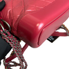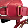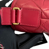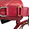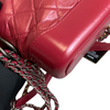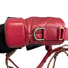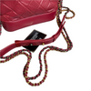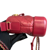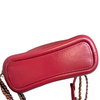 This Chanel Gabrielle bag is crafted of red aged calfskin leather with diamond topstitches and a sturdy smooth calfskin base. It has double leather-threaded thin gold-tone and silver ruthenium chain-link silver straps with a shoulder pad for that chic and stylish look.