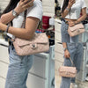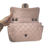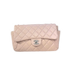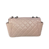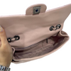 Turns heads with this Around Pockets Flap in Lambskin leather Ruthenium hardware. Add a touch of femininity to your attire, whether for a casual outing or a formal evening. This magnificent bag has been constructed in a beautiful pastel pink lambskin leather. It features a chain link and leather interwoven shoulder strap. Its interior features a slip pocket as well as outer side pockets; enough space to carry all your essentials.