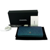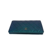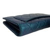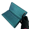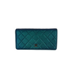 This Chanel Yen Wallet features a lambskin leather body in a beautiful iridescent green color.  With multiple card slots and a zip pocket, your cards and cash can easily be organized in style!