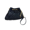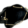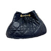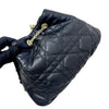 This is an authentic Christian Dior Ammi Small Lambskin Supple Macrocannage in Black. This small bucket style bag is crafted of cannage quilted lambskin leather. The bag features a gold chain and leather shoulder strap and gold chain link cinch cord with a CD logo at the end. The bag opens to a matching suede interior with a patch pocket.