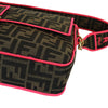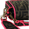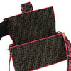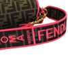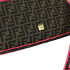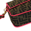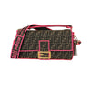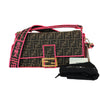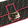 This is an authentic Fendi Baguette 1974 Large Fabric Jacquard FF in Tobacco and Pink. This chic shoulder bag is made from Fendi Zucca canvas in tobacco brown. It boasts a matching top handle and an optional shoulder strap with gold hardware. The crossover flap opens to reveal a fabric interior complete with a zipper pocket.