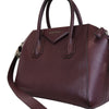 This structured bag is a must have for the fashionista on the go. With one interior flat pocket, a cell phone pocket and zipped pocket you’ll stay organized with this roomy bag. We love how this gorgeous wine colour brings out the construction on this classic Givenchy style.