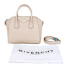 The Givenchy Antigona Small in Beige is a structured, versatile bag and is a must have for the busy fashionista. With its optional hands free shoulder strap, you can run errands in style. The interior features a pocket for your cell phone, a flat pocket, and a zipped one for those things you want to keep extra safe. This pretty shade of beige makes for easy pairings and adds a touch of sophistication to any ensemble.