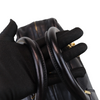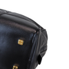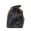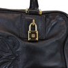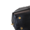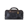 The Loewe Amazona 35 bag, crafted in elegant black leather, comes with two handles, a padlock, and keys. It features gold fittings, two interior pockets, and an additional zipper pocket.