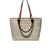 Anagram Tote Small Canvas Calfskin Ecru Tan