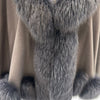 Open Front Coat Fox Fur Trim Cashmere Brown