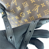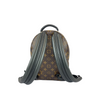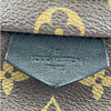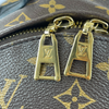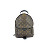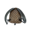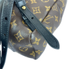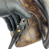 The Louis Vuitton Palm Springs PM features a monogram canvas body, a front exterior zip pocket, a flat leather top handle, flat back straps, and a top zip closure.