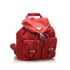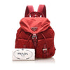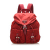 This Prada backpack features a nylon body, an exterior front pocket with buckle closure, a flat back straps, a flat top handle, a top flap with a buckle closure, a drawstring closure, and an interior zip pocket. The top opens to a spacious interior. This is a stylish backpack you can use to impress in your daily travels.