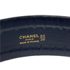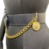 This Chanel Vintage Chain Trimmed Leather Waits Belt is made from black lambskin leather embellished with a gold-toned chain following a medallion detail at the front.