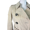 Add this Burberry Trench Coat in classic beige to your wardrobe. Made from high-quality cotton, it showcases a flattering belted silhouette and a double-breasted design. A versatile piece for any season or occasion.