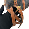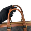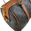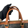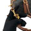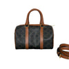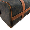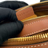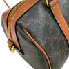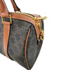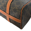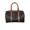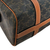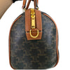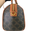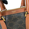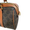 This is an authentic Celine Boston Triomphe Canvas Calfskin in Tan. This chic shoulder bag is made of coated canvas with brown leather trim. The bag features an optional shoulder strap and top handles with a gold top zipper. This opens to a brown fabric interior with a zipper pocket.