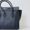Celine bags are crafted in the most luxurious skins. The leathers are natural and unique, offering you a one of a kind stylish experience. The Celine Drummed Leather Micro Luggage Tote is one marvelous bag. It features a calfskin leather exterior and interior, as well as rolled handles. It also offers zipped closure, inner zipped pocket and double flat pocket, as well as an outer zipped pocket on front.