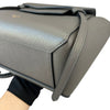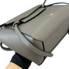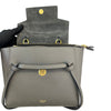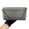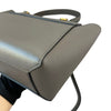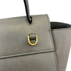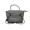 This is an authentic Celine Grained Calfskin Nano Belt Bag in Grey. This stylish tote, made from grained calfskin leather, showcases a structured, roomy design. It includes a leather top handle, a detachable shoulder strap, and shiny gold tone clasps. The facing flap opens to a matching suede interior.