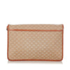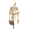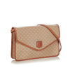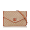 Celine Macadam Crossbody Bag Brown. This crossbody bag features a leather body, a front flap with magnetic snap closure, an adjustable flat leather strap, and an interior zip pocket.