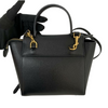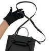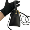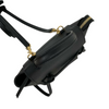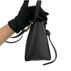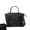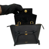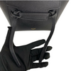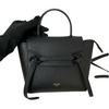 This Celine Pico Belt Bag is crafted of grained calfskin leather in classic black with a structured and spacious silhouette. The bag details a leather strap top handle, an optional shoulder strap with gold-toned hardware, and a front-facing flap decorated by knotted straps.