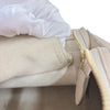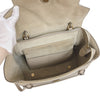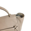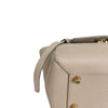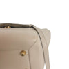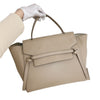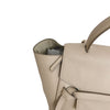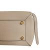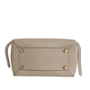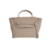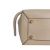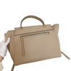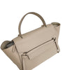 This Celine Mini Belt Bag is crafted of calfskin leather in beige with a structured and spacious silhouette. The bag details a leather strap top handle, optional shoulder strap with brass hardware, and a front-facing flap that is decorated by knotted straps.