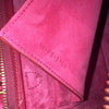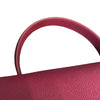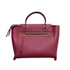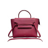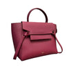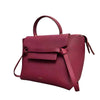 This Celine Mini Belt Bag is crafted of calfskin leather in burgundy with a structured and spacious silhouette. The bag details a leather strap top handle, optional shoulder strap with brass hardware, and a front-facing flap that is decorated by knotted straps.