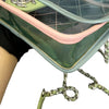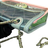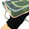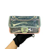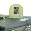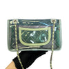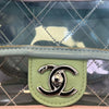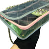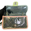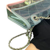 This is an authentic Chanel Coco Splash Flap Mini PVC Pastel in Blue, Green, and Pink with Silver Hardware. This shoulder bag is crafted of transparent PVC with iconic diamond shaped stitching. The handbag has pink, blue, and green leather trim. This bag also features a silver chain shoulder straps threaded with green leather and a silver Chanel classic CC turn lock on a green leather tab. This opens with a front flap to a matching PVC plastic interior.