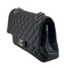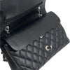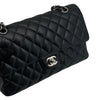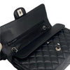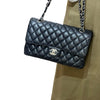 This gorgeous Chanel Double Flap Caviar Medium Black features a woven strap, an exterior back slip pocket, and silver toned hardware. It has a double flap and frontal silver CC turn-lock closure . Perfect for an owner who appreciates a clasic leather piece.