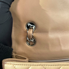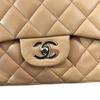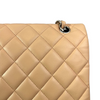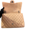 Indulge in a classic and timeless style with this Chanel Single Flap Maxi bag in beige lambskin leather and silver toned hardware.