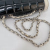 This Chanel Chocolate bar Flap Bag is crafted from squart-quilted paren’t Leather in a versatile black shade adorned with a silver CC turn-lock closure. Don't miss your chance to own this Rare Vintage beauty.