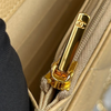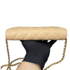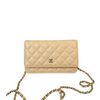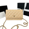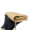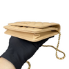 This Caviar Wallet on Chain features a beige caviar quilted leather body, a leather woven gold-tone chain strap, a front flap with a snap closure, and interior zip and slip pockets. Snatch up this rare beauty before it’s gone!!!