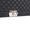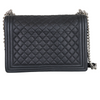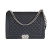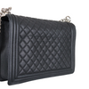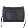 This Chanel Large Le Boy Bag comes in a classic shade of black and is a staple in any fashionistas wardrobe. Featuring diamond quilted Matte Caviar leather with a cc clasp closure in Silver Hardware as well as a chain strap in the same hardware, this classic piece will never go out of style. With more than enough room for all of your essentials this bag can seamlessly go from daytime business to evening party.