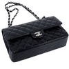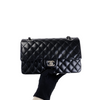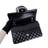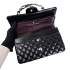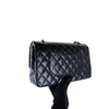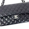 This Chanel Classic Medium double flap bag is crafted in diamond-quilted soft black lambskin leather featuring a CC turn-lock and chain in silver hardware.