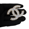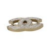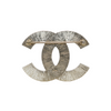 This Chanel brooch features a metal hardware frame, gorgeously encased around a baby blue pearly enamel matherial with Chanel’s signature quilted detailing.