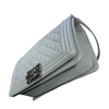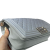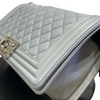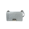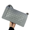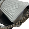 This Chanel Old Medium Boy bag in light grey caviar leather features beautiful silver hardware. This classic and iconic bag can be worn either as a shoulder or crossbody bag. You do not want to miss the chance to own this!