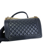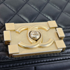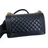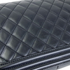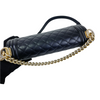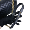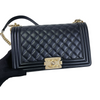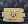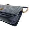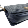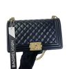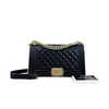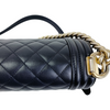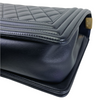 This Chanel Old Medium Boy Bag in Quilted Black Lambskin is a knockout classic piece. The interior features one flat pocket for those items you want to keep handy.