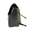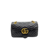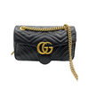 The small GG Marmont bag has a softly structured shape and a flap closure with Double G hardware. The sliding chain strap can be worn multiple ways, changing between a shoulder and a top handle bag. Made in matelassé chevron leather with a heart on the back.
