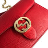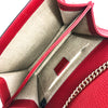 Gucci has been carrying out desirable handbag styles for the past few years. From the Marmont collection to the Dionysius collection, all of them are celebrity favorites. Grab that celebrity style with this chic Red Calfskin Leather Crossbody Bag featuring Gucci’s signature Interlocking GG logo on the flap. Perfect for both day and night outs!